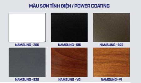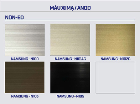 Màu sắc nhôm có 4 màu: Trắng sứ, ghi, nâu cát và màu vân gỗ.